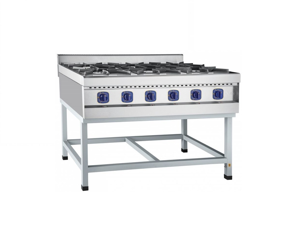 Газовая плита шестигорелочная на подставке ПГК-69П.Предназначена для приготовления первых, вторых и третьих блюд в наплитной посуде.