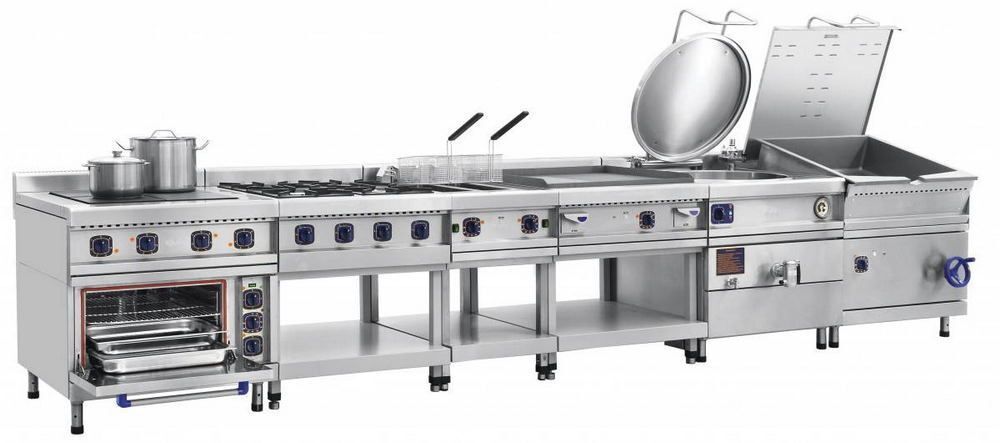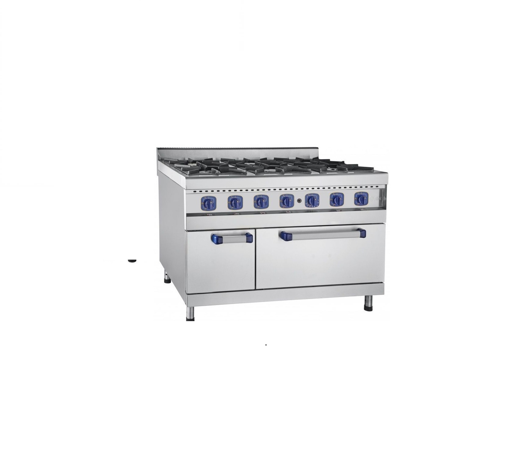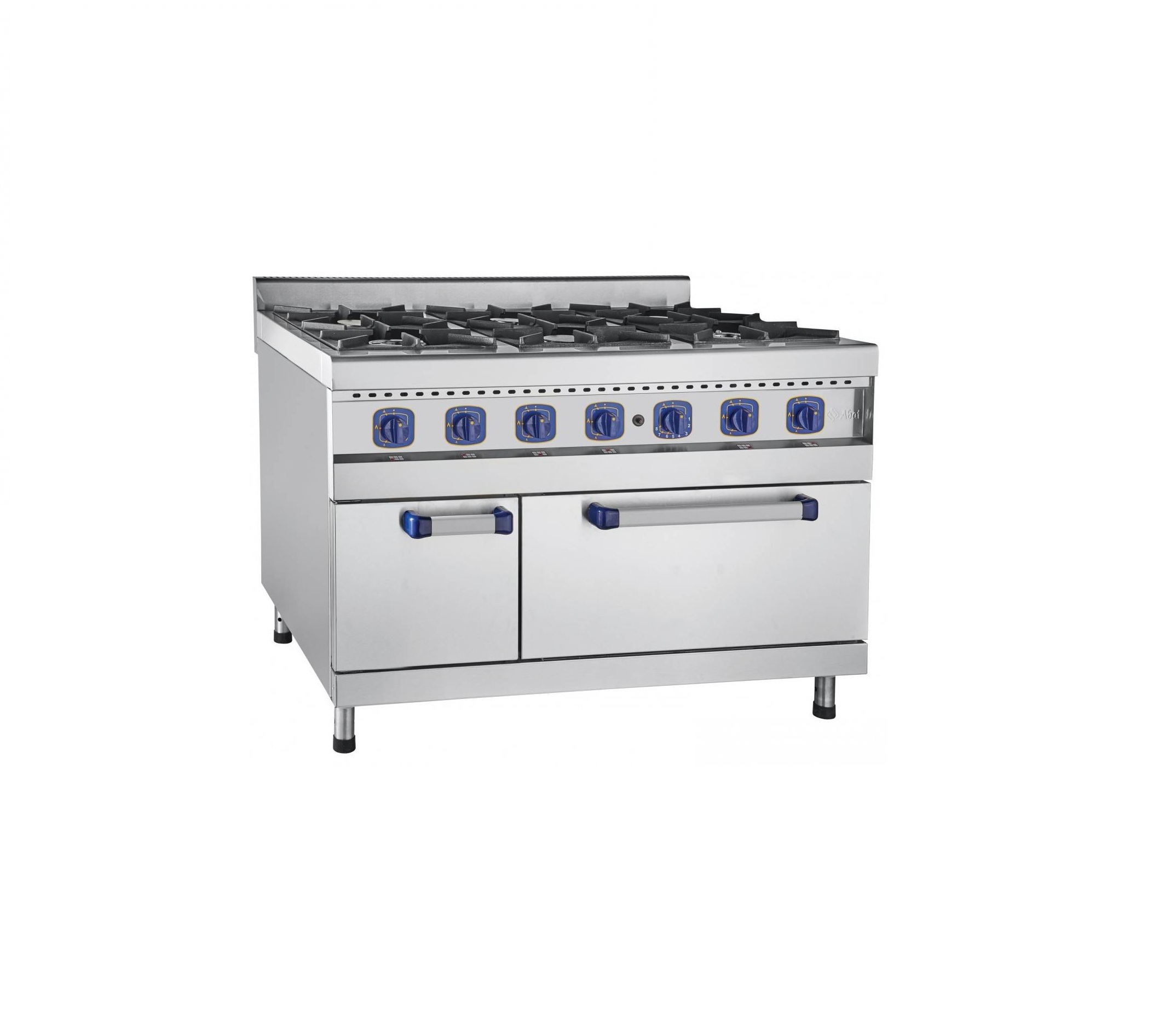 Плита имеет четыре горелки по 5,5 кВт и две мощные горелки по 7,5 кВт. Плита снабжена системой поджига и устройством "газ-контроль". Внизу - жарочный шкаф с одним противнем GN 2/1 и одной решеткой того же размера, изготовленные из нержавеющей стали. Рабочий диапазон температуры 120-3200 С. Плита имеет регулируемые по высоте ножки. В комплект поставляются дополнительные съемные форсунки для "сжиженный" газ.